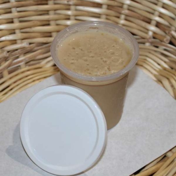 Il est présenté pour l’instant dans une coupelle avec un couvercle. Les gourmands pourront sublimer cette crème avec de la chantilly.
